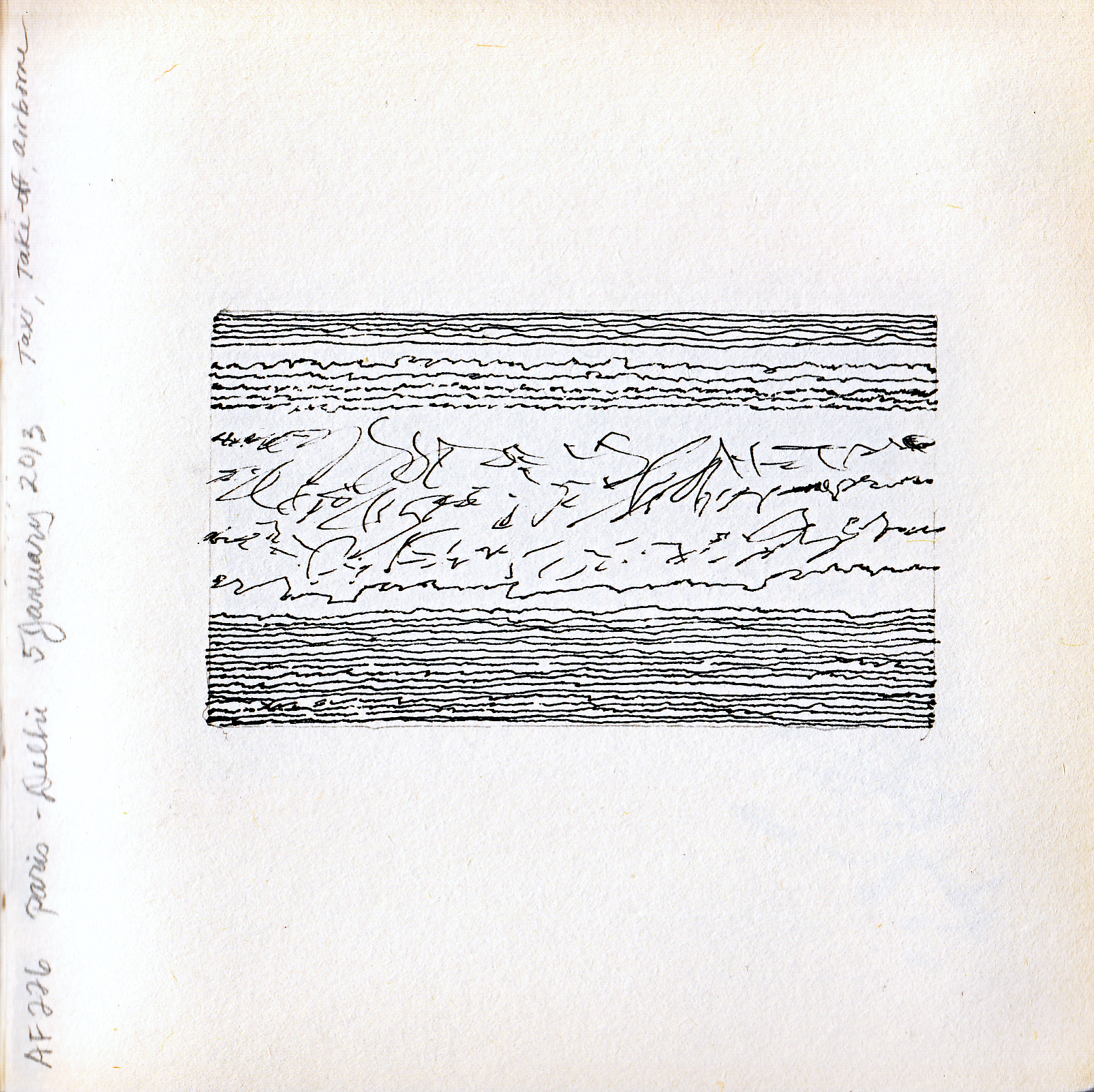 air france 226.paris delhi.5 january 2013, pen on paper, 5.5″ x 5.5″