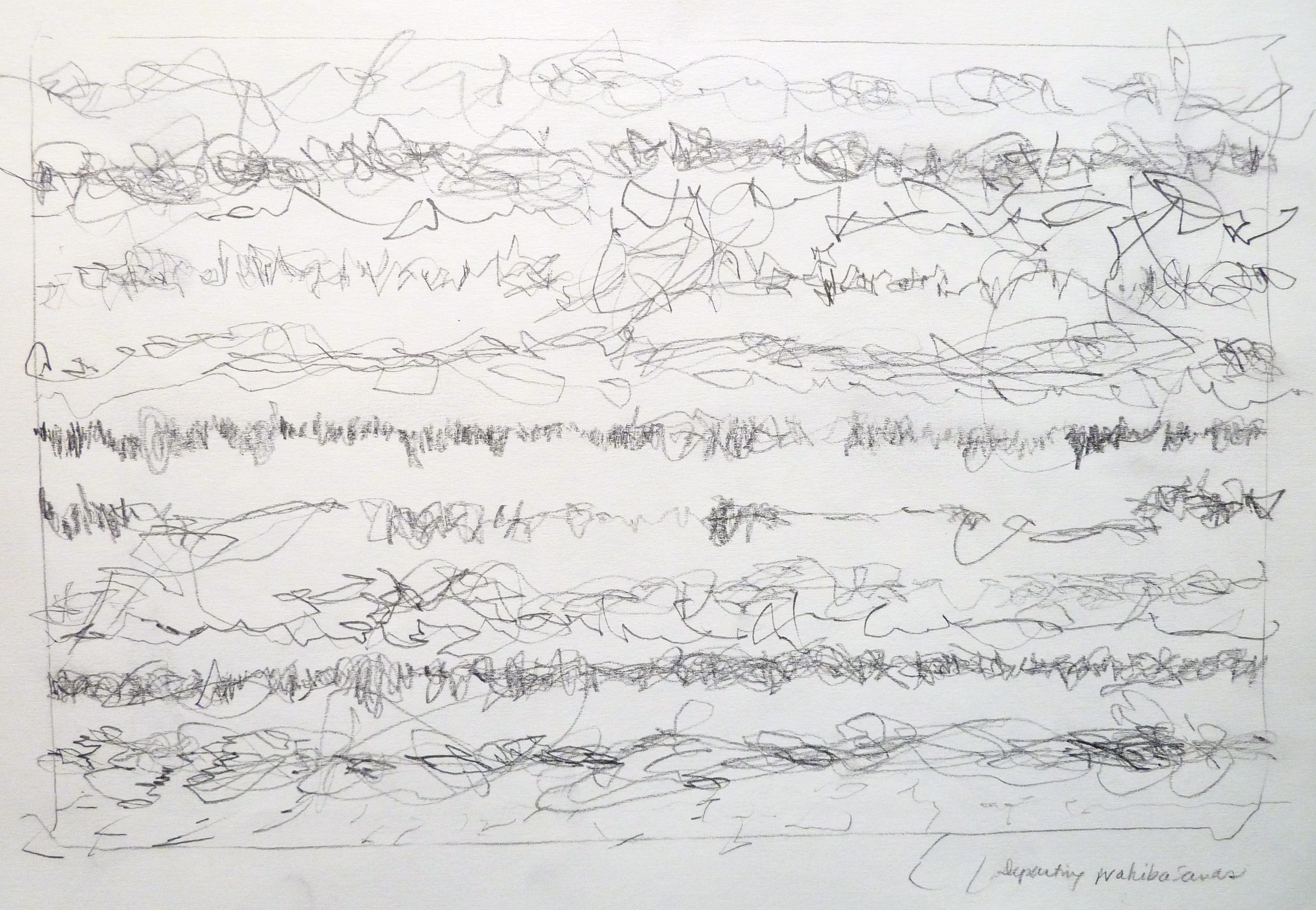 oman traffic pattern, departing wahiba sands, 2010, pencil on paper, 8″ x 10″